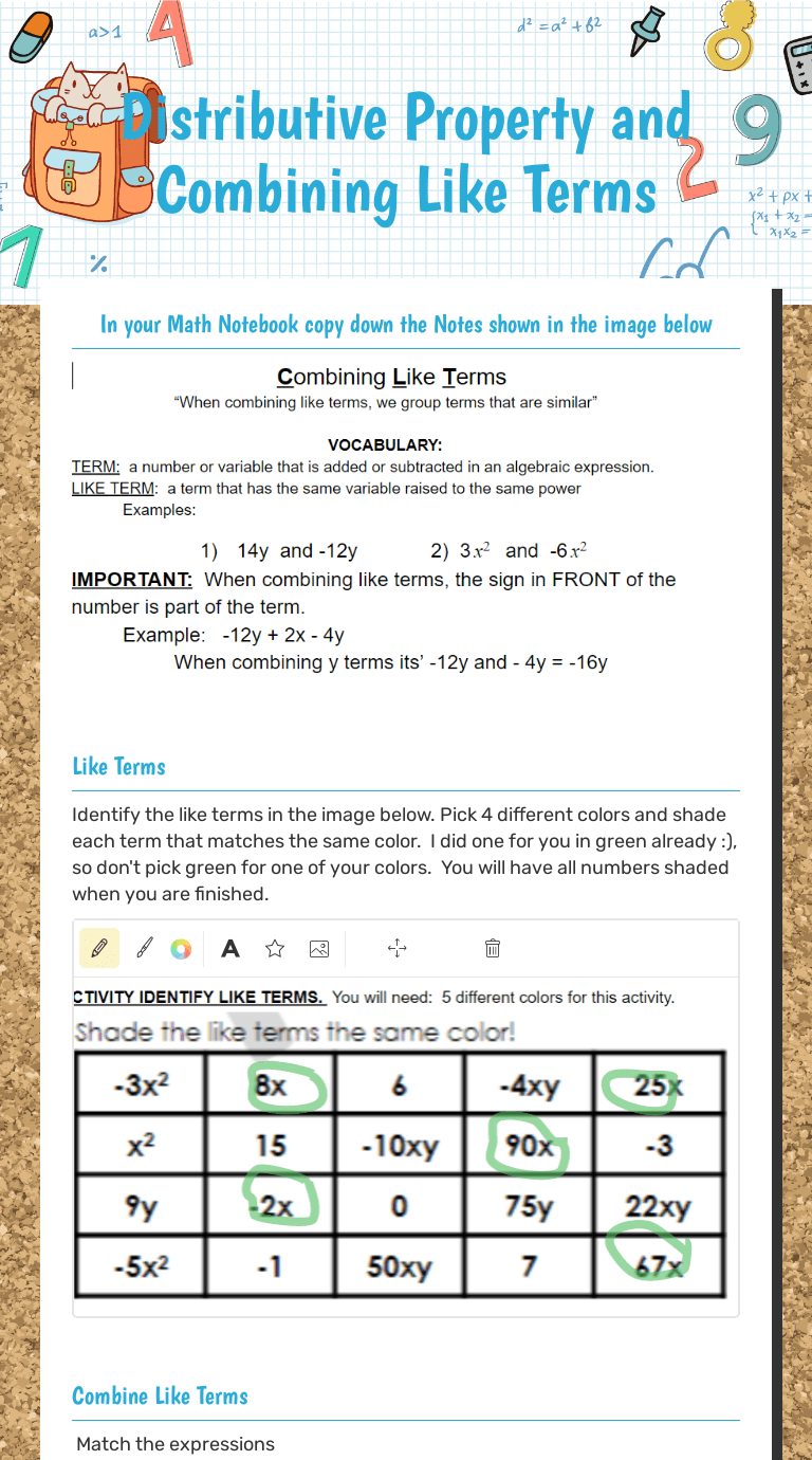 25 scaffolded questions that start relatively easy and end with some real challenges. The expressions include ones where you need to combine . Get the combining like terms worksheet for free when you download today! Watch our video or our lesson. Worksheets, welcome to the properties of real numbers worksheets section at tutorialspoint.com. Watch our video or our lesson. On this page, you will find . Use distributive property and combining like terms to simplify each expression. 25 scaffolded questions that start relatively easy and end with some real challenges. Combining like terms worksheets generator. Thanks to all of you who support me on patreon. (b) w + w + w + w + w. In order to solve equations and expression, you will combine like terms often. The expressions include ones where you need to combine . One twin + one twin = 2 twins. Combine like terms for each expression. Get our combining like terms worksheets and make your students familiar. Get the combining like terms worksheet for free when you download today! The expressions include ones where you need to combine . A quick explanation of how to combine like terms. Worksheet by kuta software llc. I have left it in editable form so further . Simplify each of the following. In order to solve equations and expression, you will combine like terms often. The expressions include ones where you need to combine . On this page, you will find . Watch our video or our lesson. The worksheets can be made either as pdf or html files (the latter are editable in a word processor). Worksheets, welcome to the properties of real numbers worksheets section at tutorialspoint.com. Thanks to all of you who support me on patreon. One twin + one twin = 2 twins. (a) y + y + y + y. In algebra, when there are items that are the same thing, we can add them together to make a simpler expression. Use distributive property and combining like terms to simplify each expression. 25 scaffolded questions that start relatively easy and end with some real challenges. Get our combining like terms worksheets and make your students familiar. Thanks to all of you who support me on patreon. Worksheet by kuta software llc. The expressions include ones where you need to combine . One twin + one twin = 2 twins. Combining like terms worksheets generator. Watch our video or our lesson. The worksheets can be made either as pdf or html files (the latter are editable in a word processor). 25 scaffolded questions that start relatively easy and end with some real challenges. Thanks to all of you who support me on patreon. Simplify each of the following. Get our combining like terms worksheets and make your students familiar. On this page, you will find . One twin + one twin = 2 twins. The expressions include ones where you need to combine . Worksheet by kuta software llc. Combine like terms for each expression. Get the combining like terms worksheet for free when you download today! Use distributive property and combining like terms to simplify each expression. Identifying Like Terms Worksheet - Algebraic Expressions Worksheets Math Worksheet Pdf -. In order to solve equations and expression, you will combine like terms often. Use distributive property and combining like terms to simplify each expression. Combining like terms worksheets generator. A quick explanation of how to combine like terms. I have left it in editable form so further .